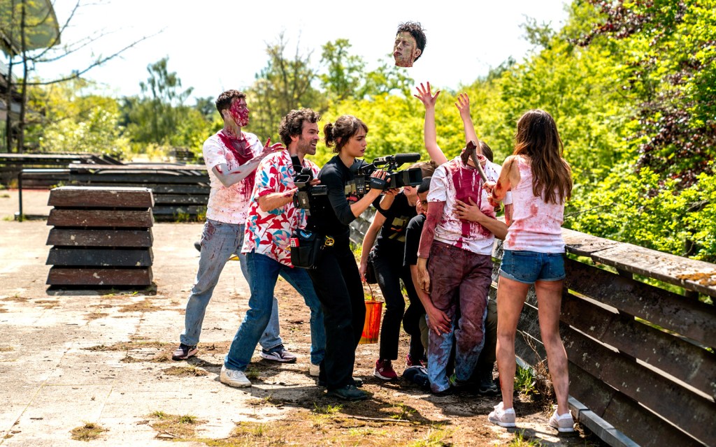 Coupez ! aborde une réflexion intéressante sur la notion de succès et la capacité d’un acteur à improviser. Surtout, il tente de donner une définition du cinéma aujourd’hui : dans l’histoire, le film de zombies tourné par Rémi (Romain Duris) est dédié à être diffusé en direct sur une plateforme vidéo, et défini comme « rapide, pas cher, et dans la moyenne »… Alors, est-ce que c’est ça, le cinéma en 2022 ? Une question en phase totale avec l’actualité, avec l’explosion des plateformes de vidéo à la demande dans un contexte pandémique.