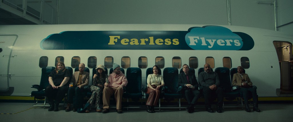 On s’attache rapidement à ce petit groupe de personnages peu ordinaire, tantôt soudé, tantôt éclaté, mais dont les membres se soutiendront finalement toujours dans la douleur, d’une manière ou d’une autre. Chacun a son histoire, son parcours, et sa propre manière de gérer sa phobie. Il est aussi intéressant de voir qui va endosser le rôle de leader ou de suiveur, de soumis ou de rebelle. Les situations cocasses s’enchaînent, avec un second degré fin et subtil qui rappelle celui de Sans filtre de Ruben Östlund (2022), mais aussi celui Joyeuses funérailles de Frank Oz (2007). Sur le plan scénaristique, on s’attend vraiment à tout, et on a toujours hâte de découvrir ce qui va se passer.