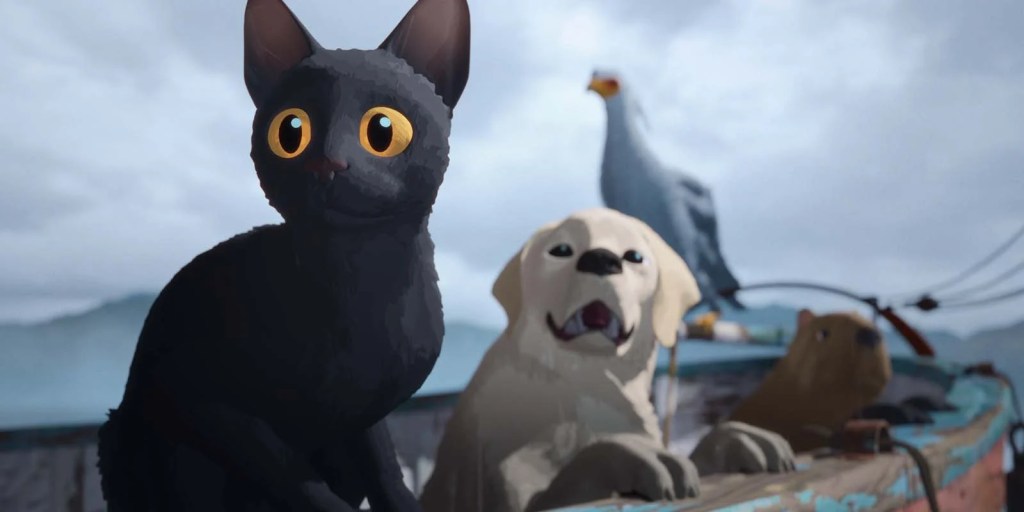 Dans un futur potentiellement proche, un chat se retrouve dans un univers envahi par une gigantesque montée des eaux, où toute vie humaine semble avoir disparu. Il trouve refuge sur un bateau avec un groupe d’autres animaux, et devra trouver le moyen de cohabiter et de s’entendre avec eux.